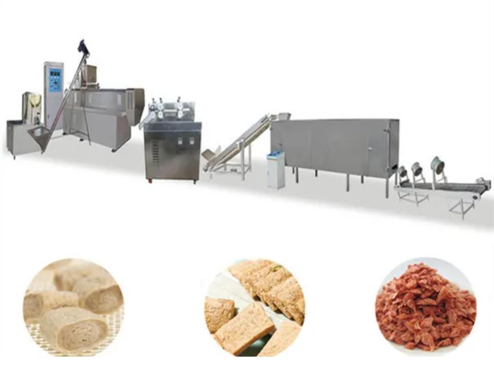 이 선은 원료로 지방질을 제거한 콩 음식 및 땅콩 식사를 가지고 갑니다. , 내밀고 섞기 후에, 자르고 말려서, 식사는 층 섬유 짜임새가 됩니다. 완제품에는 고단백이 있습니다; 고기와 같이 보이고 맛보십시오; 흡수하는 기름, 물 및 풍미에 쉬운; 콜레스테롤 그리고 동물성 지방 없이, 그래서 그것은 육 제품 기업에서 널리 이용됩니다, 간이 식품 생산, 냉동 보존한 식량 생산 및 온갖 채식주의 식사 및 음식.